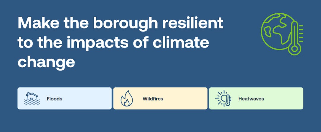 Climate change is already affecting our borough. Hotter summers, heavier rainfall, and more extreme weather events are expected. To prepare, we’ve reviewed our existing plans and identified gaps. Now we’re developing a resilience plan that embeds climate adaptation across the council and the borough.
