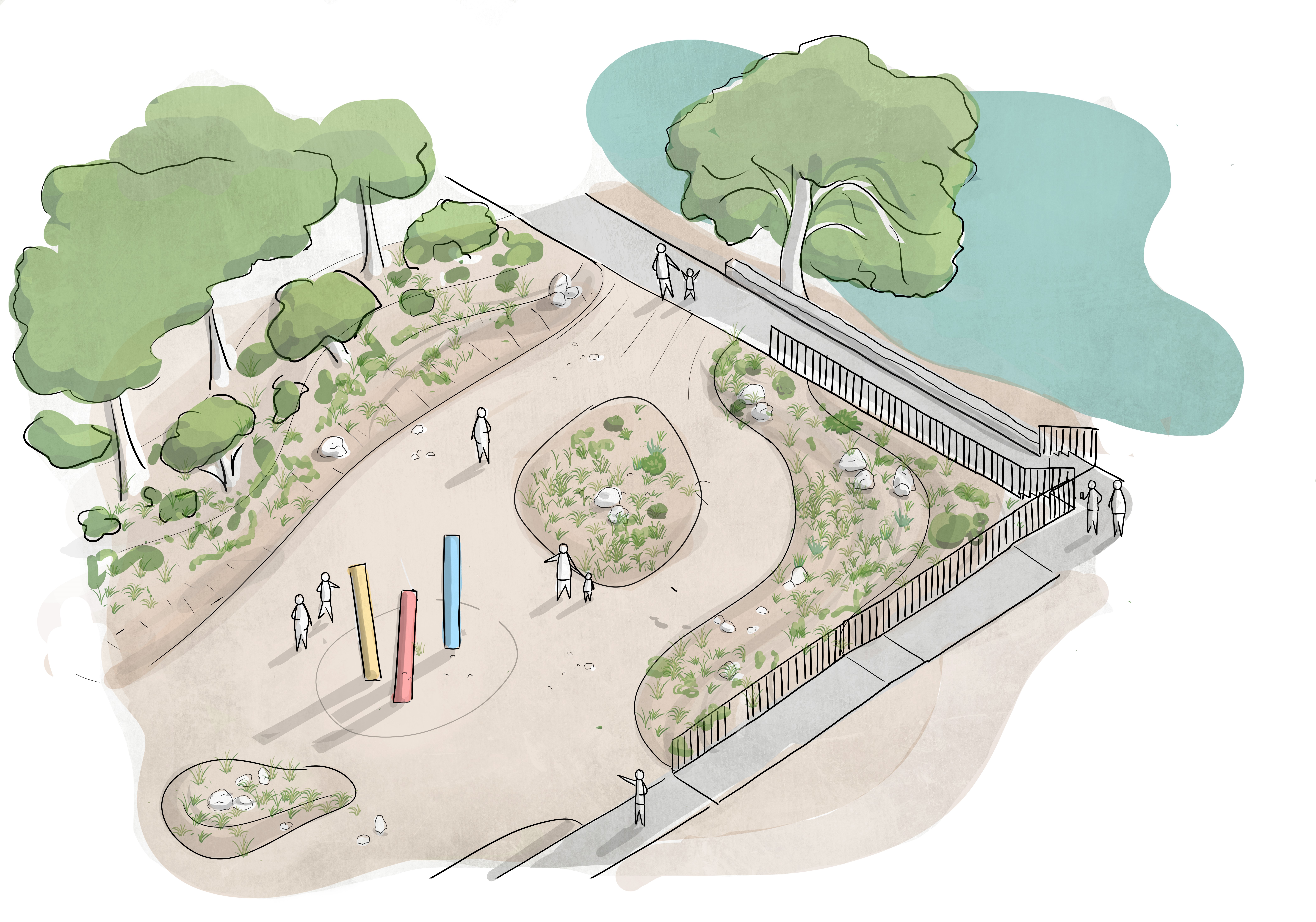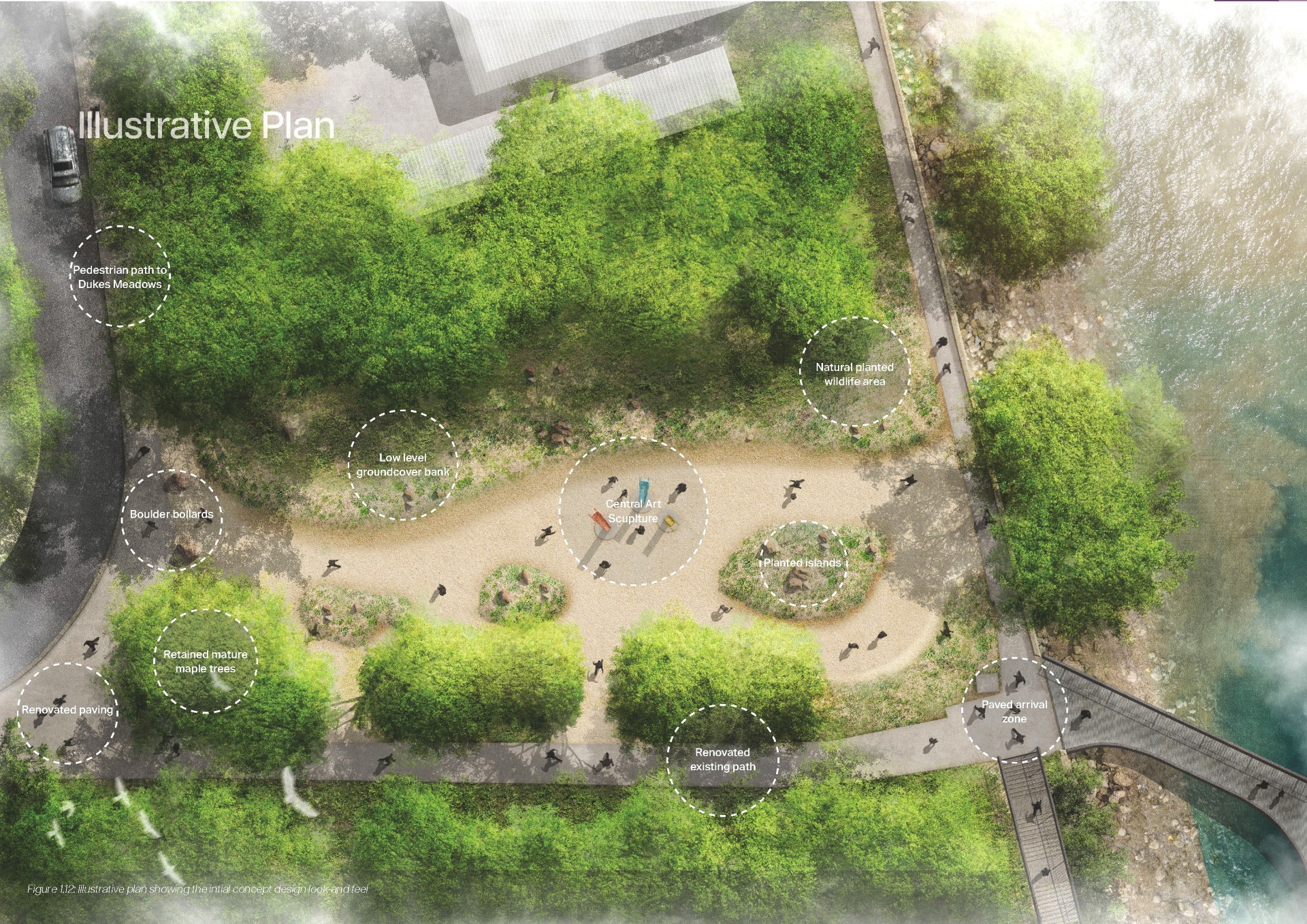 We did: We have worked closely with landscape architects and engineers to model pedestrian routes, levels and drainage patterns across the site. The new design presents a long-term solution to drainage issues and puddling, while also incorporating a clear and safe pedestrian path to the rear of Emanuel Boathouse. The DDA-compliant route from the new footbridge is being preserved, while new graded gravel paths will allow access to the heart of the site, past the planting and towards your destination.