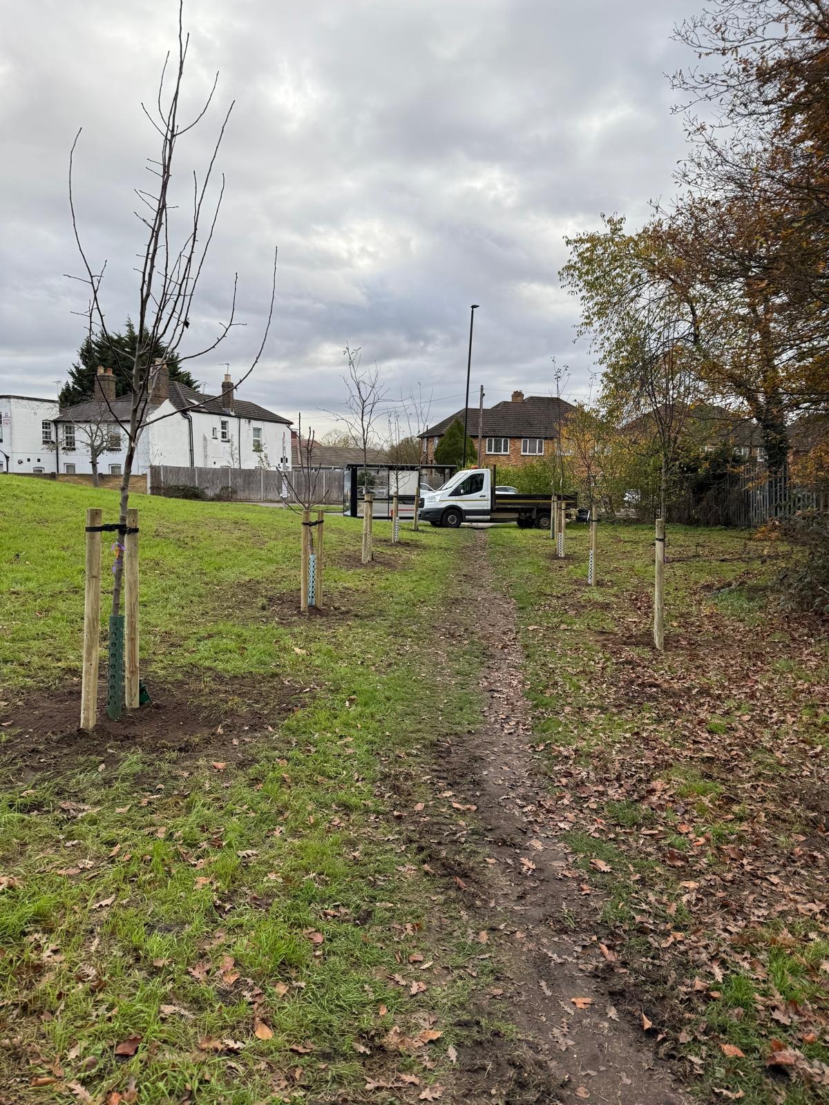 The second orchard project of Hounslow's Grow for the Future initiative has opened up a neglected alleyway in Cranford's Brabazon Estate and transformed it into a thriving space with new fruit trees and lavender. The site is still being progressed due to constant fly tips and littering, however the team is working with residents to combat these issues and foster more ownership of the space. More planting to come this year and early 2025.