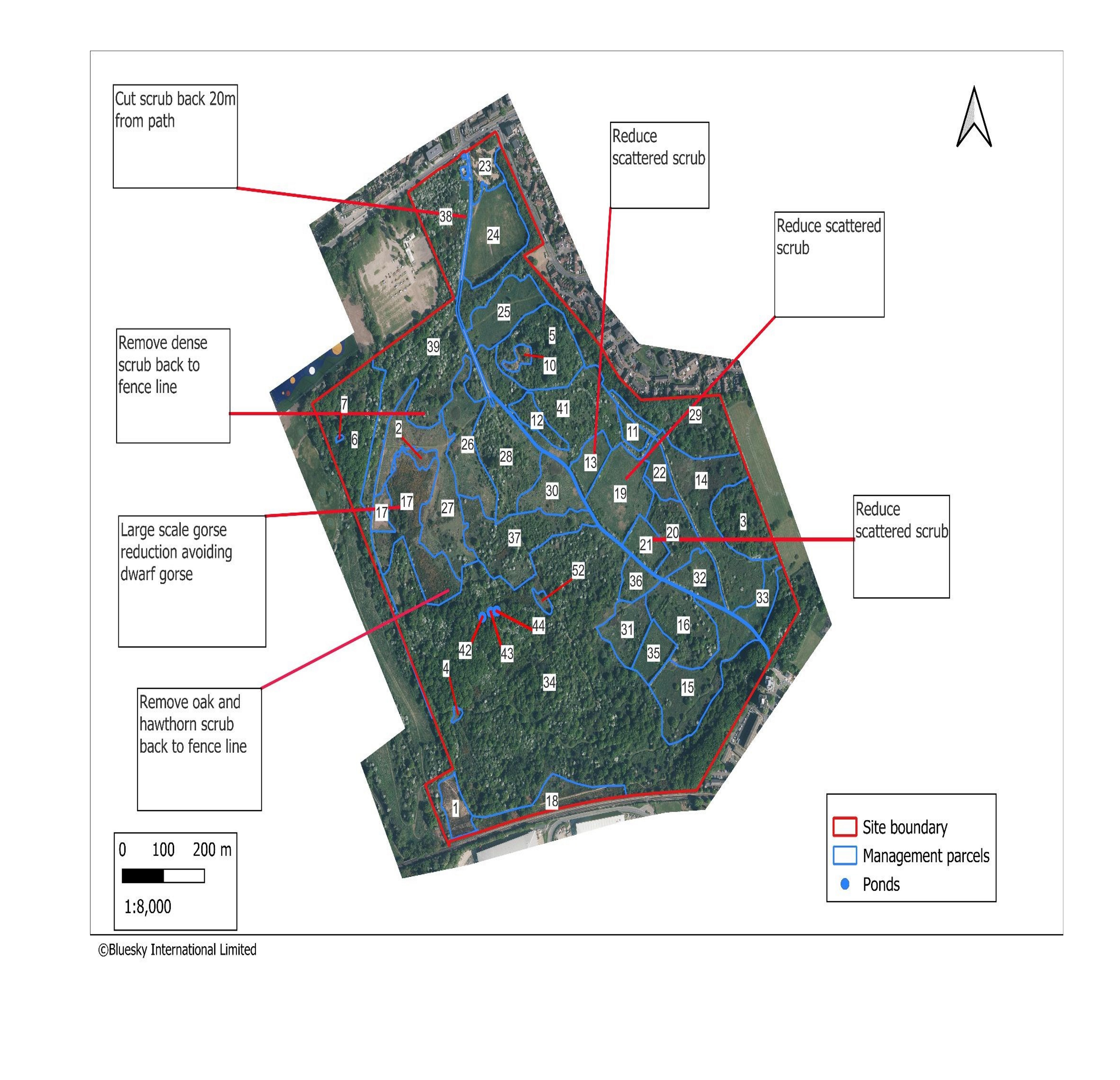 Targeted scrub reduction will take place in Parcels 13, 17, 19, 21 and 38 (see map) to: