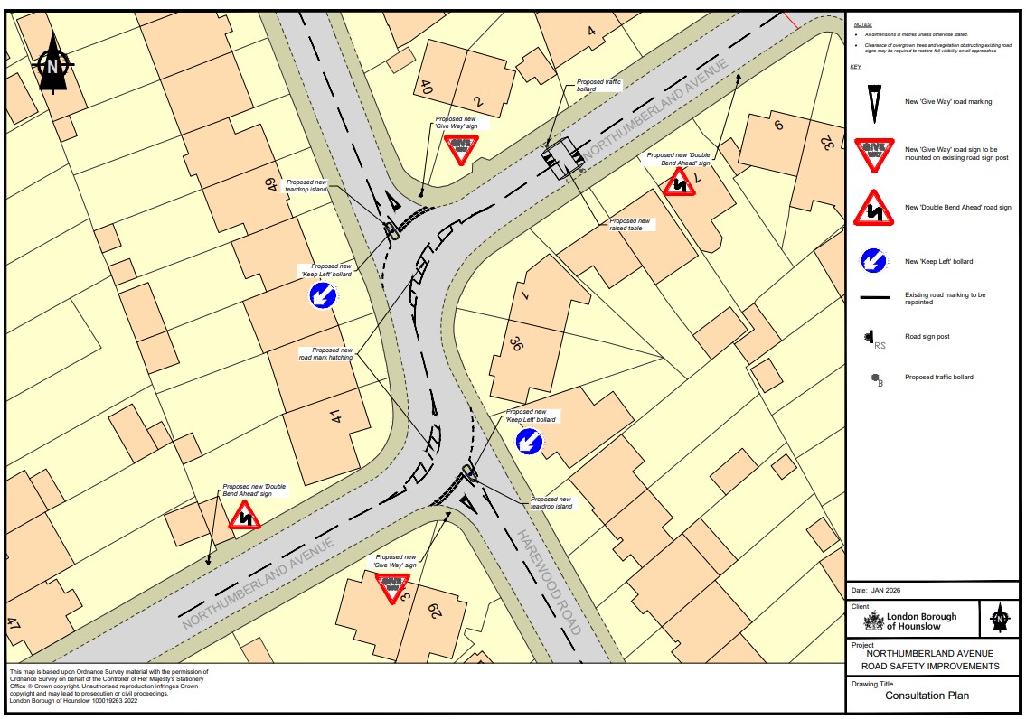 Forthcoming - Road Safety Scheme, Northumberland Avenue in IsleworthThis is to notify residents of the road safety improvements being planned on Northumberland Avenue, Isleworth in order to improve road safety for pedestrians and promote active travel in the borough.
